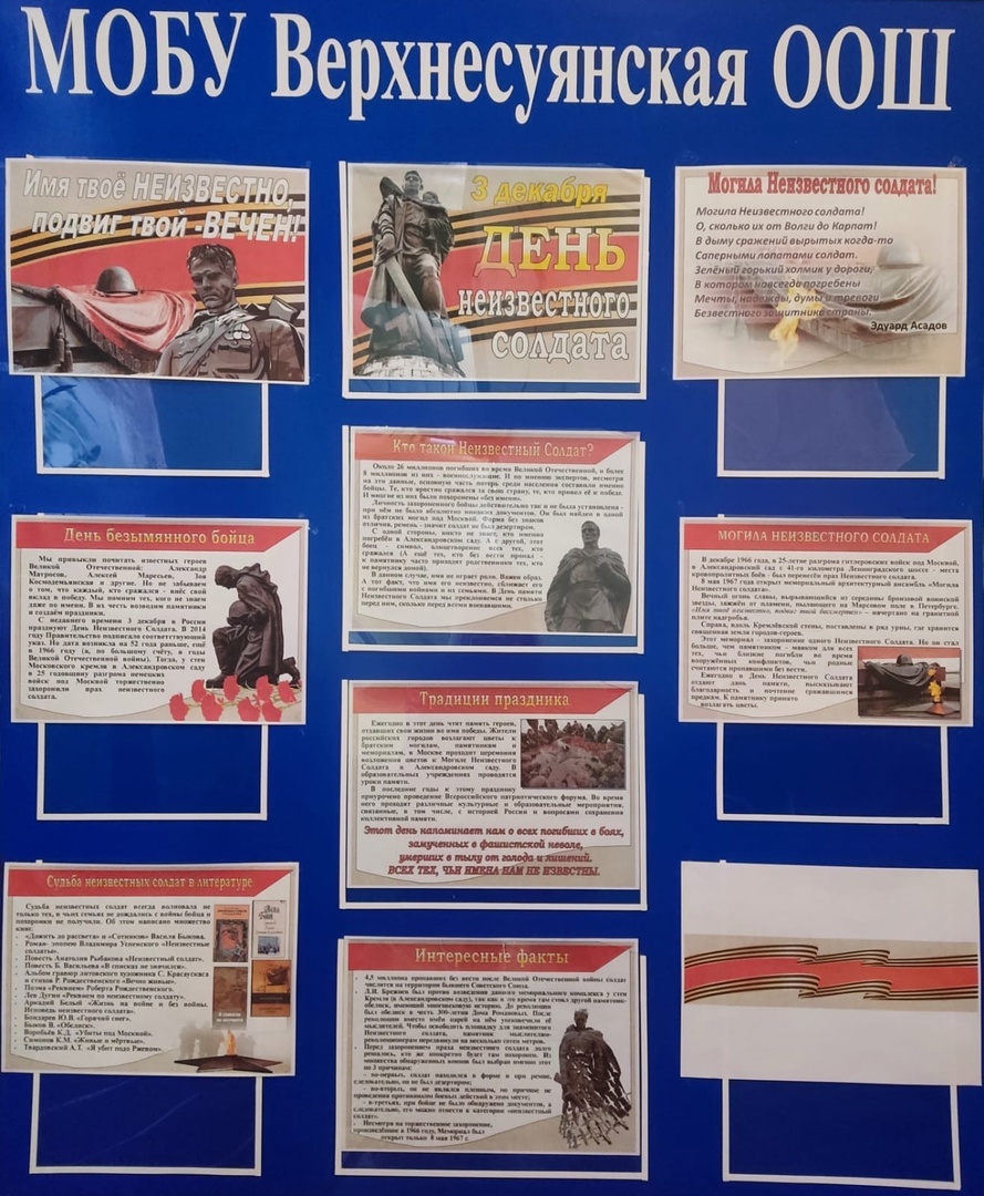В преддверии Дня Неизвестного солдата с помощью классных руководителей в школе проводятся различные памятные мероприятия, уроки мужества, классные часы.